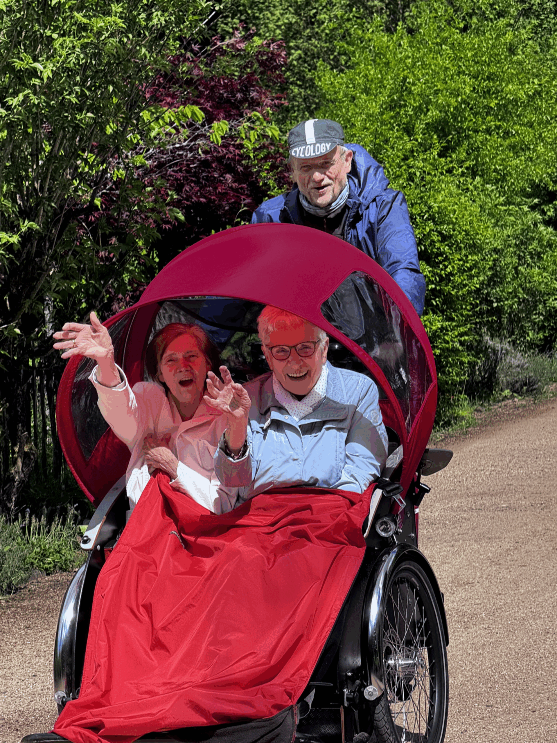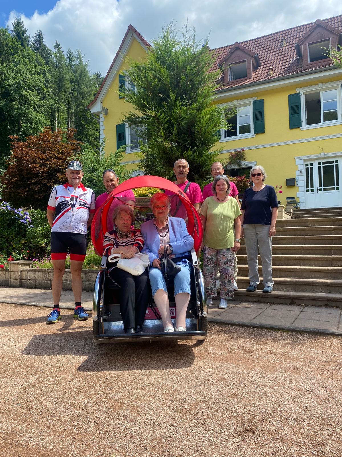 Das Rikscha-Team um Michael Meyer hatte sich zum Saisonstart etwas Besonderes einfallen lassen. Am 5. Mai machten sie sich mit ihrer Fahrradrikscha, dem roten „Toni“, von Webenheim aus ins Grumbachtal auf den Weg. Dort wurden sie schon sehnsüchtig von den Seniorinnen und Senioren der Tagespflegeeinrichtung Grumbachhof Bender erwartet.