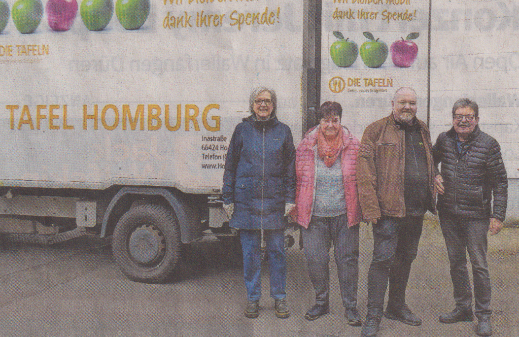Für den Tafel-Kooridinator Antonius Daschner und die Ansprechpartnerin für die Ausgabestelle St. Ingbert Monika Malter sind die Lebensmittel und Hygieneerzeugnisse nicht nur eine willkommene, sondern dringend benötigte Spende. In der Ausgabestelle St. Ingbert werden mittwochs in 100 Haushalten etwa 350 Menschen mit Lebensmitteln versorgt. Das generelle Ziel der Tafel besteht nicht darin, bedürftigen Menschen ihre staatlichen Sozialleistungen zu ersetzen oder eine „Rund-um-Versorgung“ zu bieten. Sie sieht ihre Aufgabe darin, Menschen in ihrer Armut die tägliche Sorge ums „Überleben“ ein wenig zu mildern und bestenfalls ihren beschwerlichen Weg aus der Armut materiell zu unterstützen.